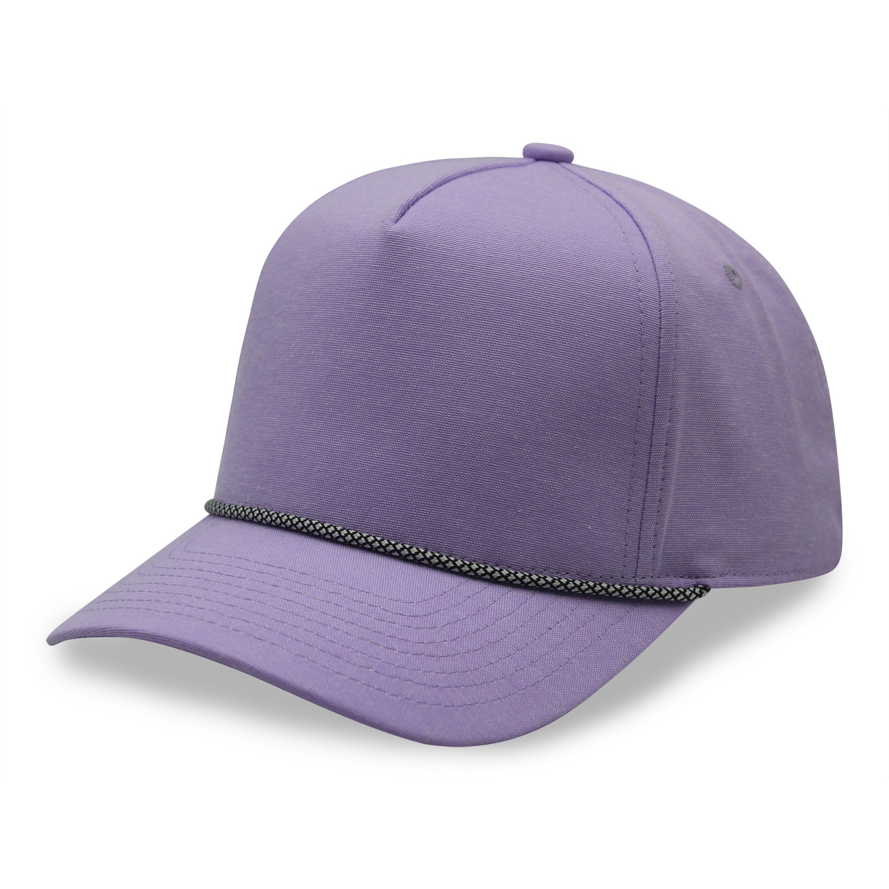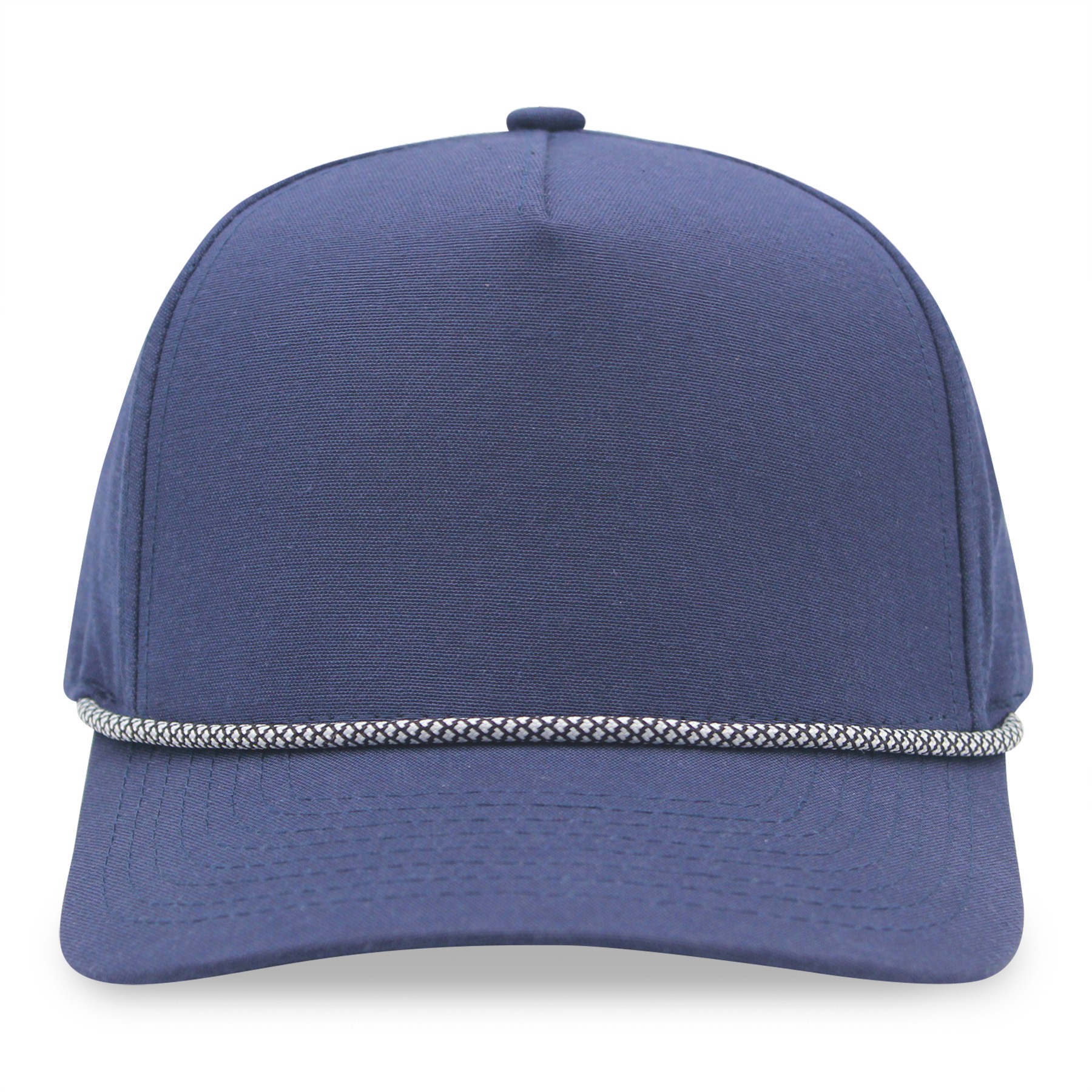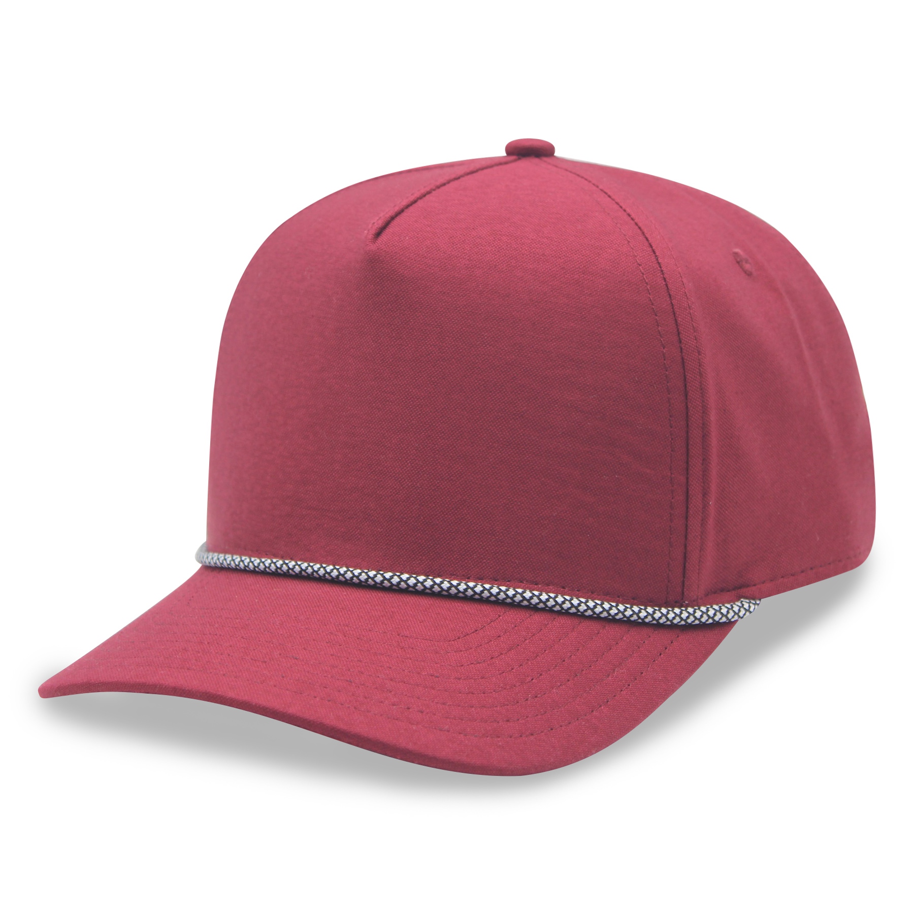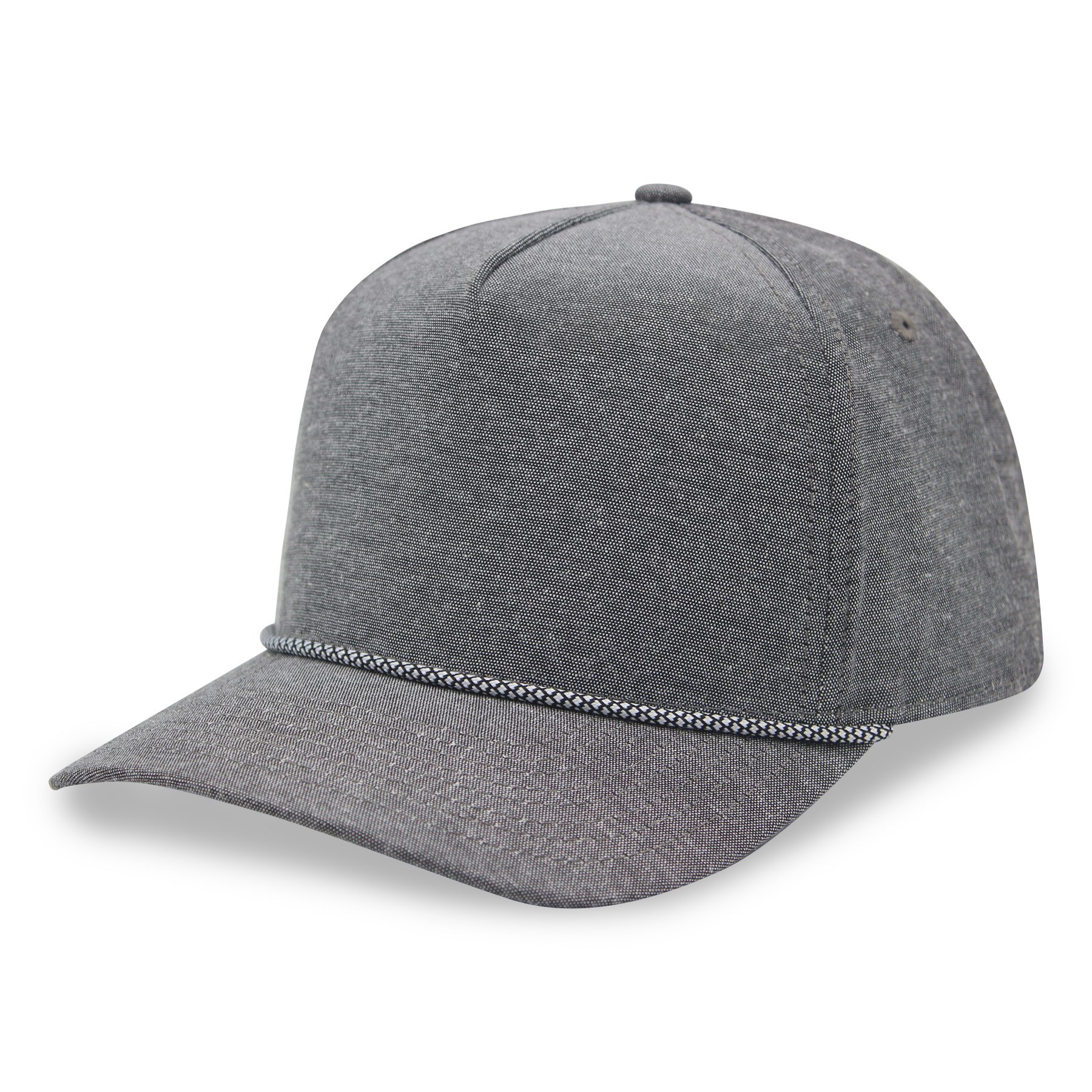 5 panels golf cap, with rope on visor, A frame style more front space for decorations like embroidery, patch and print, 100% chambray cotton, adjustable snapback