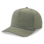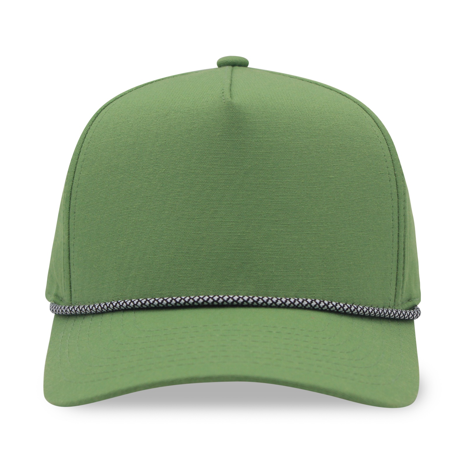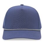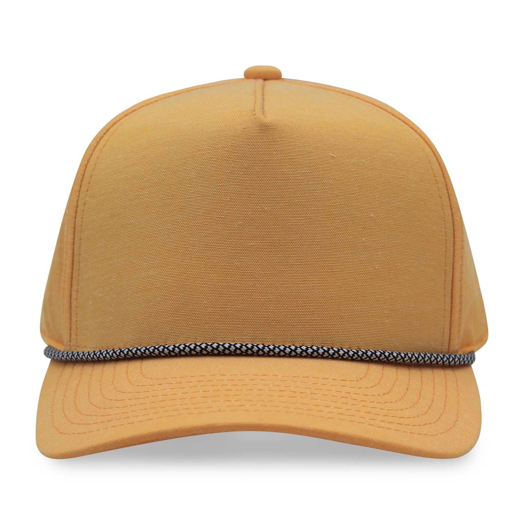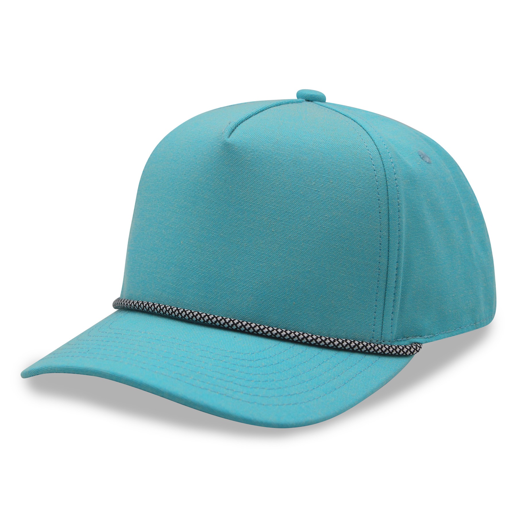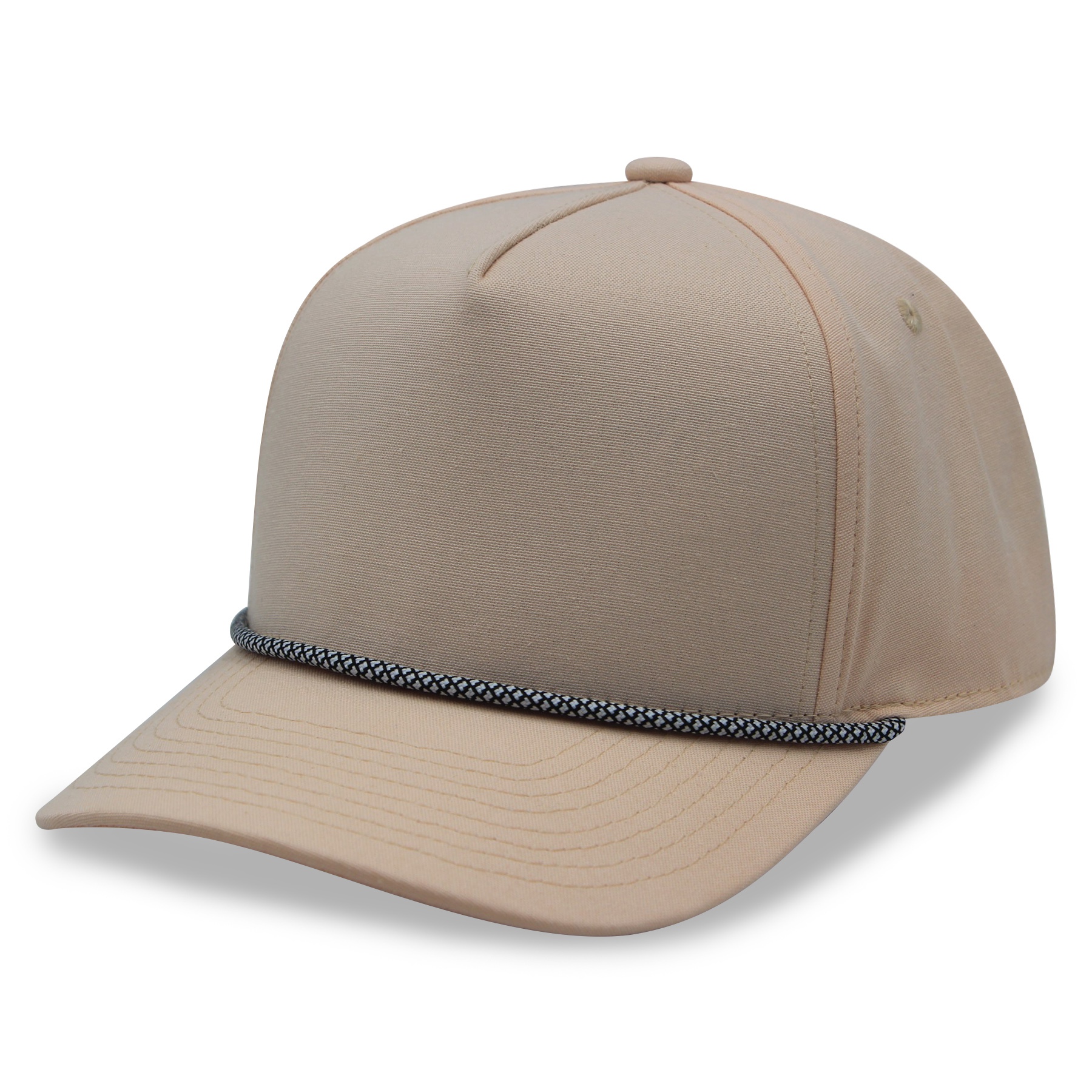 5 panels golf cap, with rope on visor, A frame style more front space for decorations like embroidery, patch and print, 100% chambray cotton, adjustable snapback