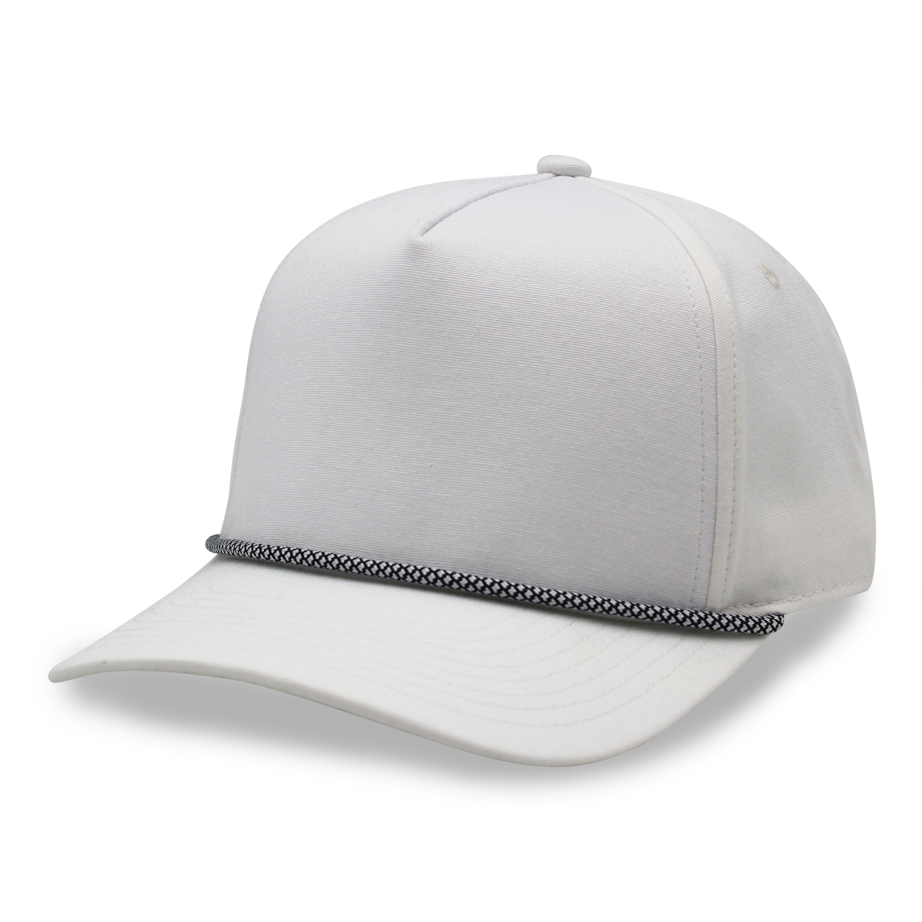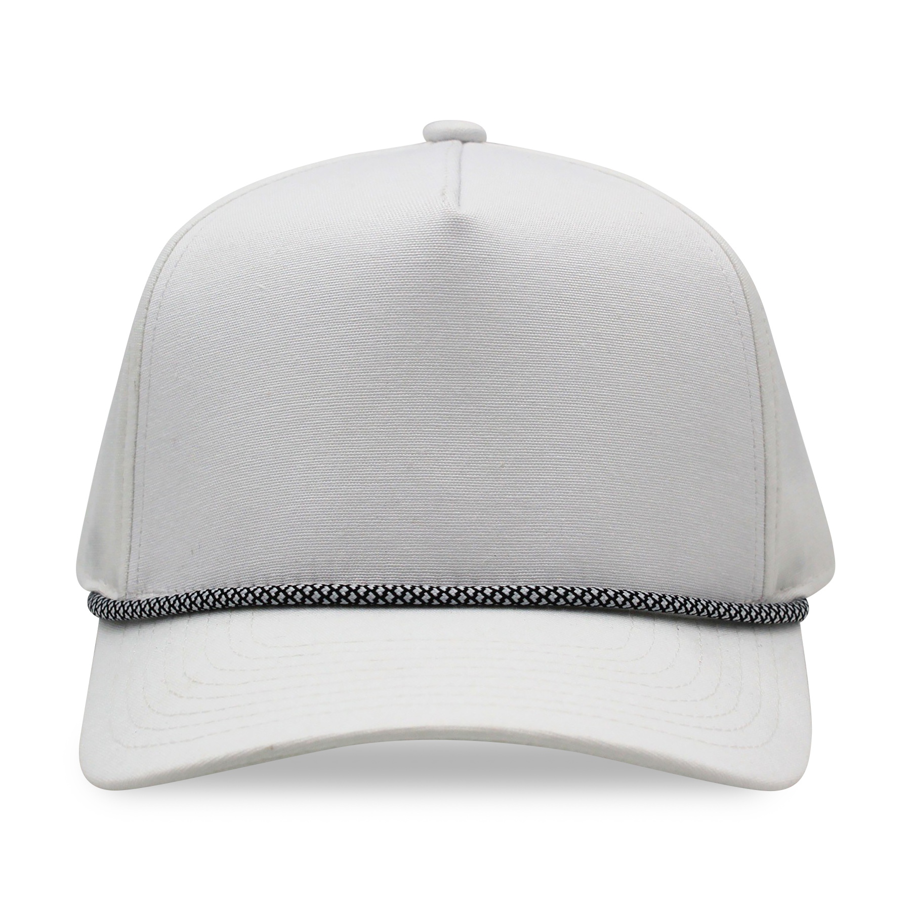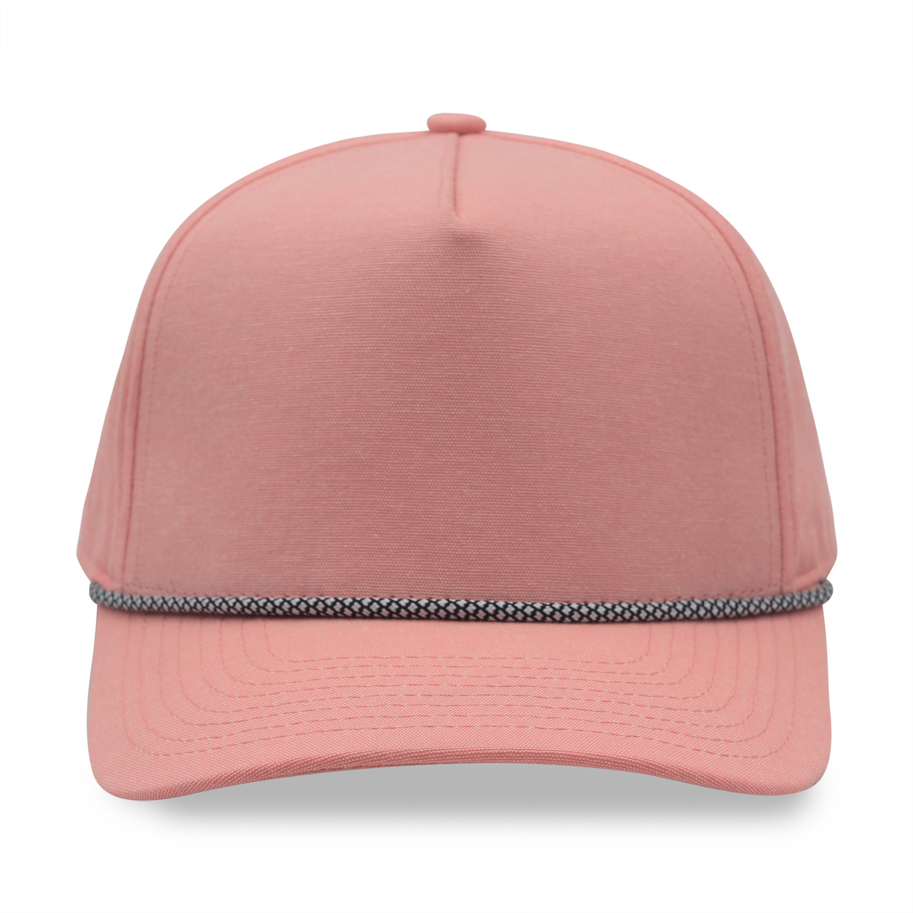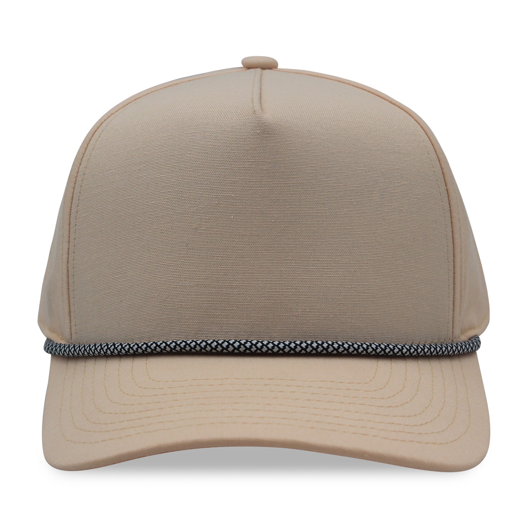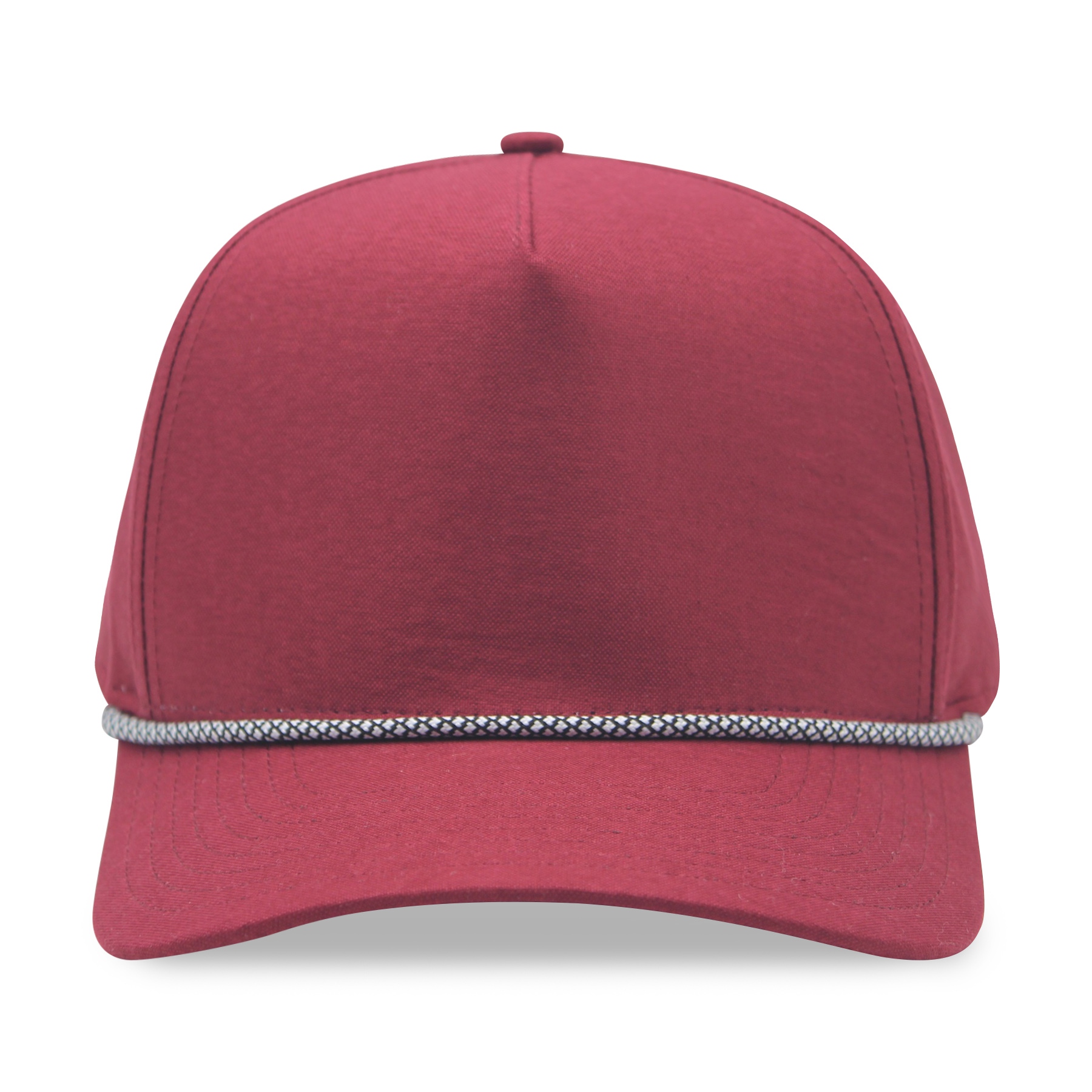 5 panels golf cap, with rope on visor, A frame style more front space for decorations like embroidery, patch and print, 100% chambray cotton, adjustable snapback