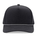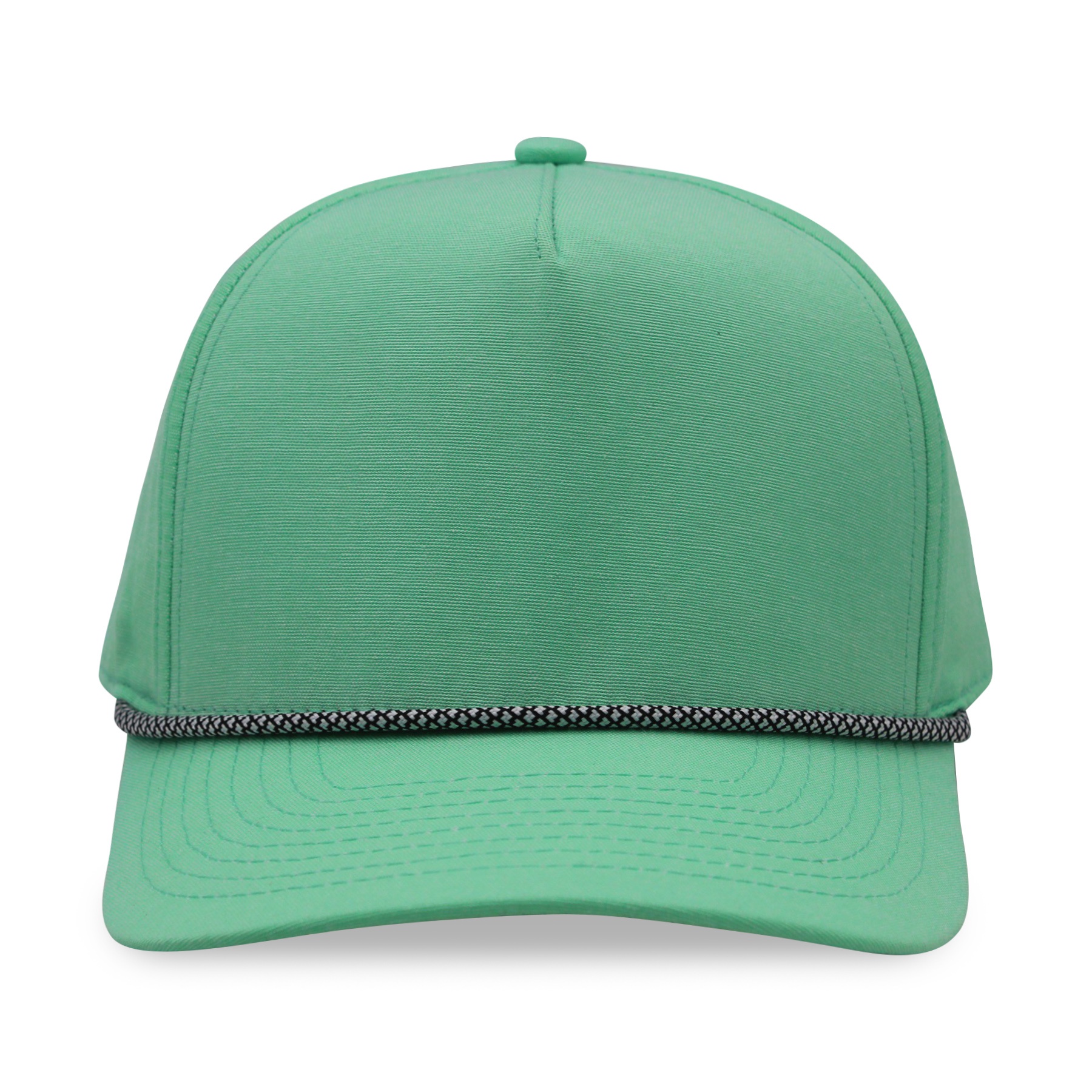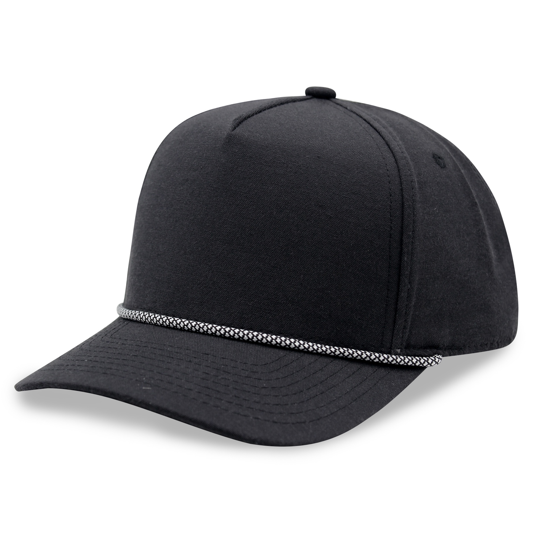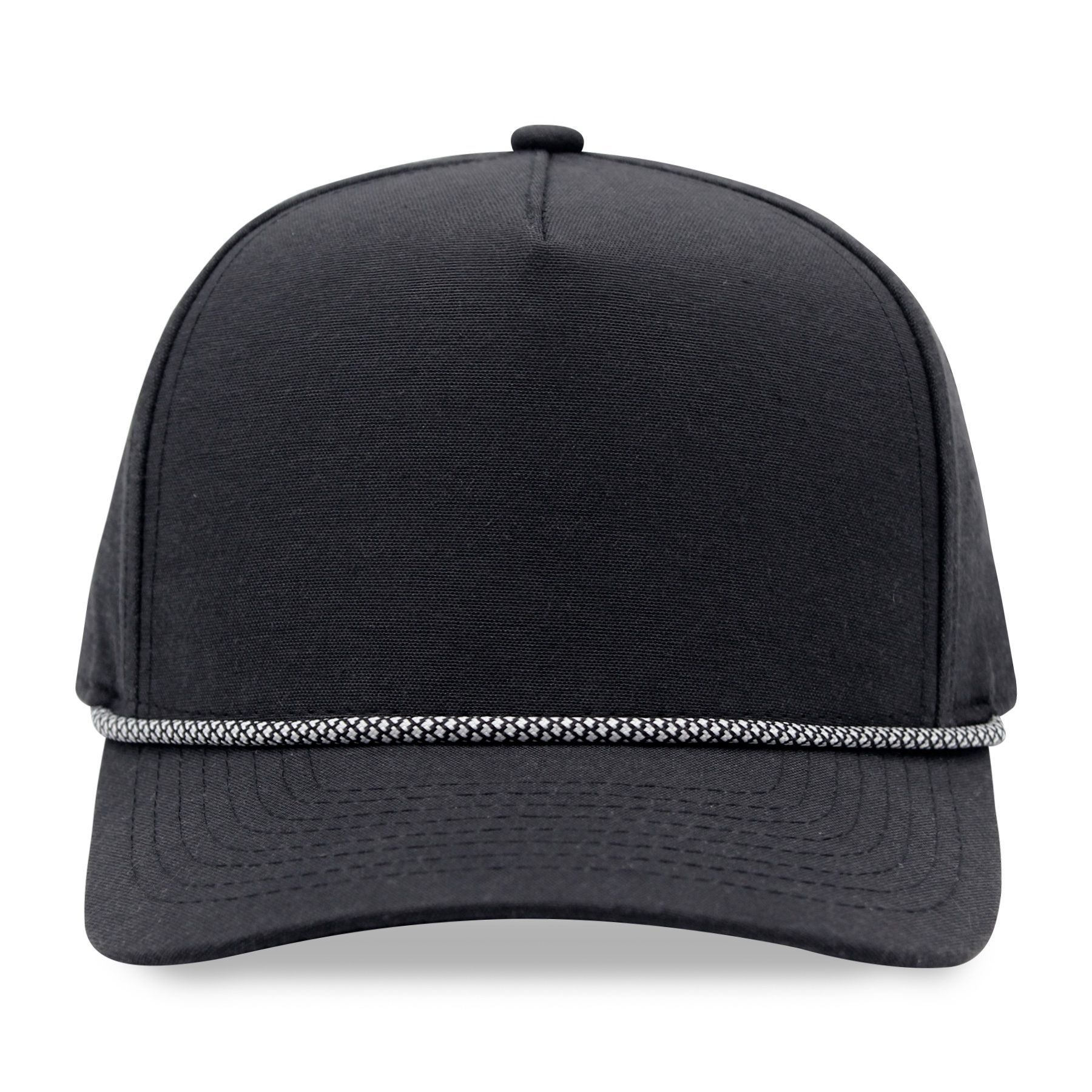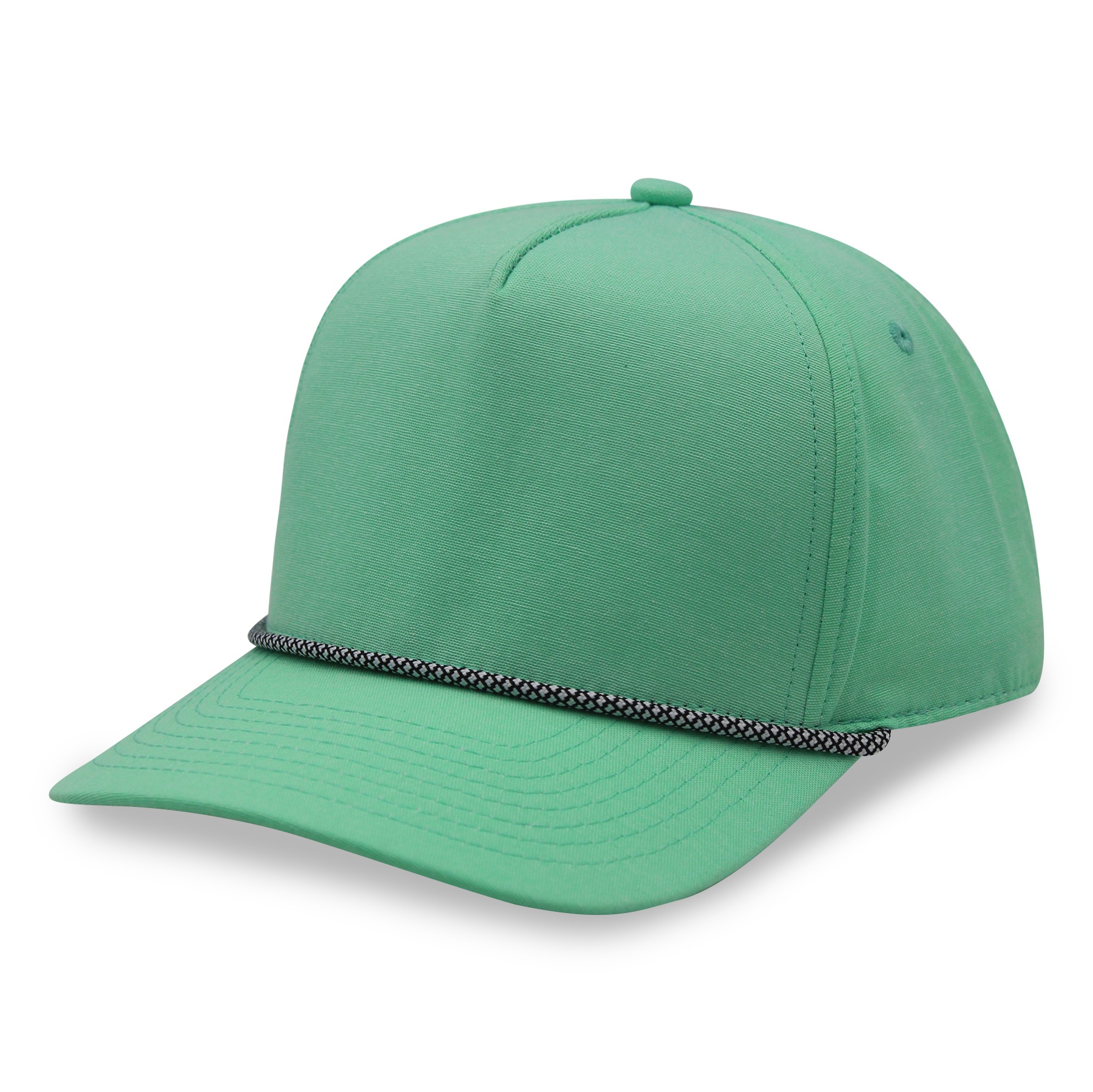 5 panels golf cap, with rope on visor, A frame style more front space for decorations like embroidery, patch and print, 100% chambray cotton, adjustable snapback
